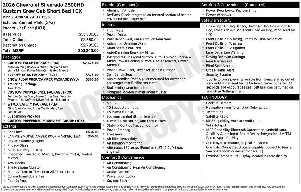 2026 Chevrolet Silverado 2500HD Custom Price includes: $1000 - Customer Cash. Exp. 04/30/2026